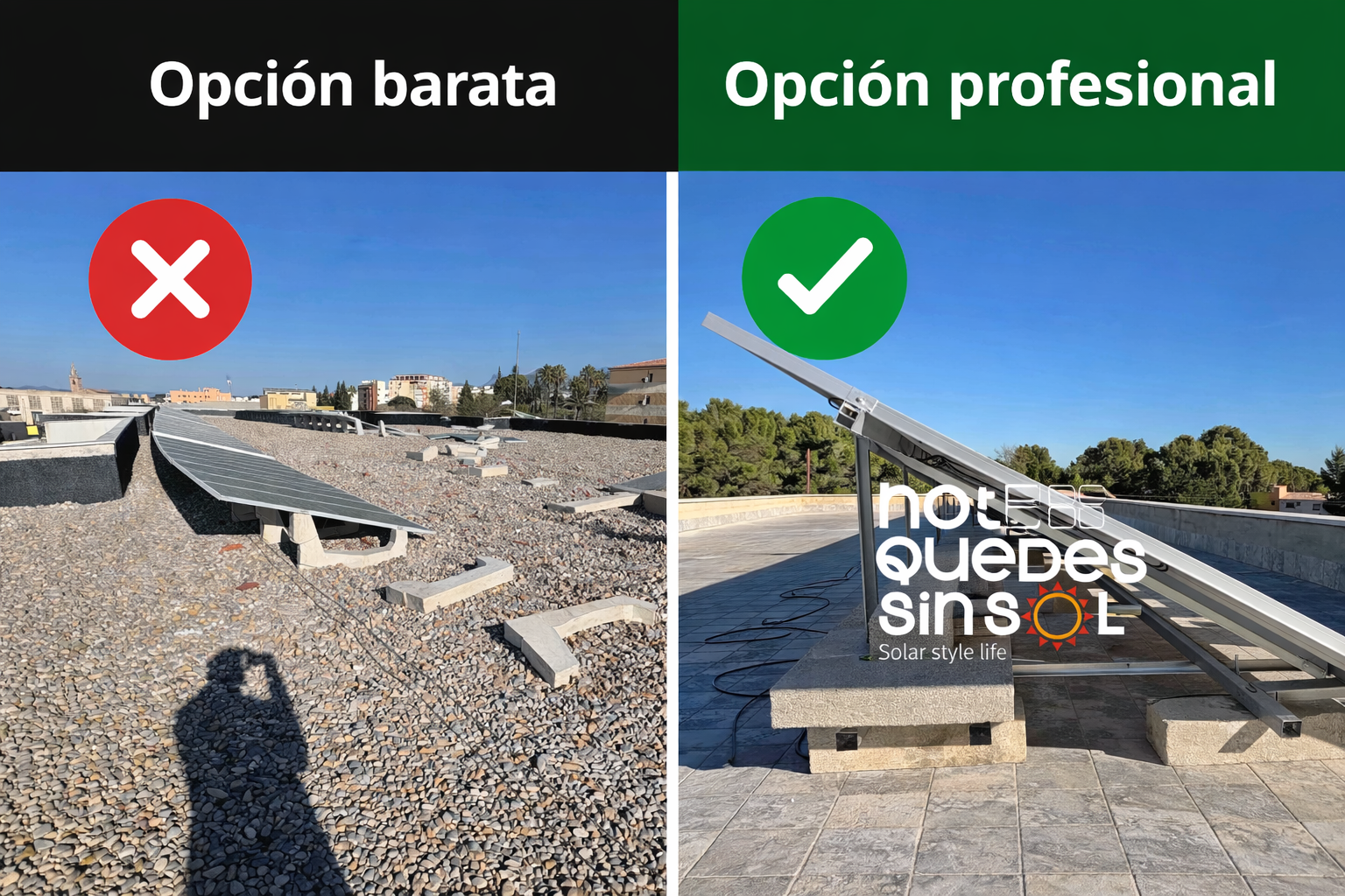 En Notequedessinsol hemos llevado a cabo la instalación de una pérgola fotovoltaica a medida en una vivienda unifamiliar en Ontinyent, transformando por completo el uso de su terraza. Esta solución no solo permite generar energía solar para autoconsumo, sino que